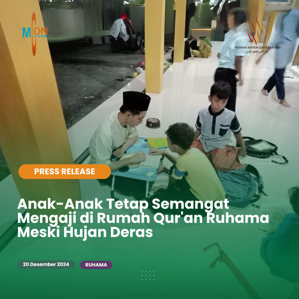 Anak-Anak Tetap Semangat Mengaji di Rumah Qur’an Ruhama Meski Hujan Deras Ruhama, 20 Desember 2024 – Hujan deras yang mengguyur wilayah Graha Artha Ruhama sejak sore hari tidak menyurutkan semangat anak-anak untuk mengikuti kegiatan mengaji di Rumah Qur’an Ruhama. Dengan membawa payung, jas hujan, dan semangat yang tinggi, mereka tetap hadir untuk belajar dan mendalami […]