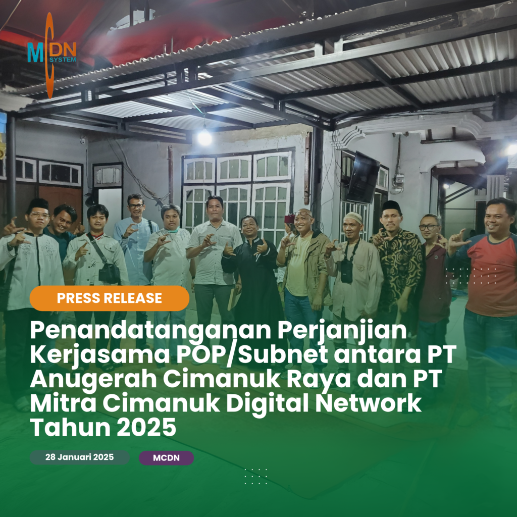 Penandatanganan Perjanjian Kerjasama POP/Subnet antara PT Anugerah Cimanuk Raya dan PT Mitra Cimanuk Digital Network Tahun 2025 Indramayu, 28 Januari 2025 – PT Anugerah Cimanuk Raya (PT ACR) dan PT Mitra Cimanuk Digital Network (PT MCDN) kembali memperkuat kemitraan mereka dengan menandatangani Surat Perjanjian Kerjasama terkait pengelolaan POP dan Subnet untuk tahun 2025. Penandatanganan […]