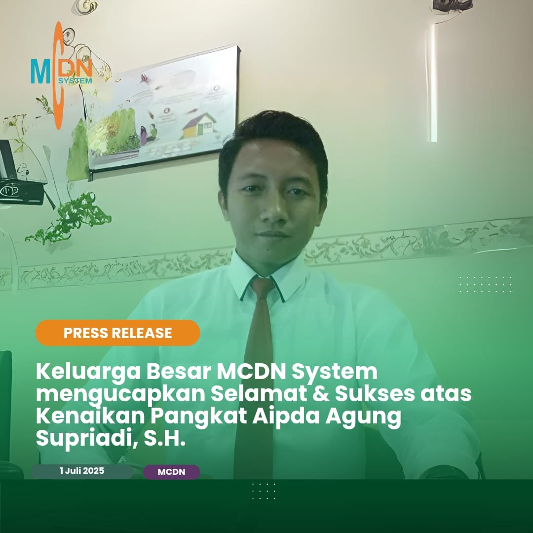 Ucapan Selamat & Sukses atas Kenaikan Pangkat Aipda Agung Supriadi, S.H. dari Keluarga Besar MCDN System Keluarga besar MCDN System