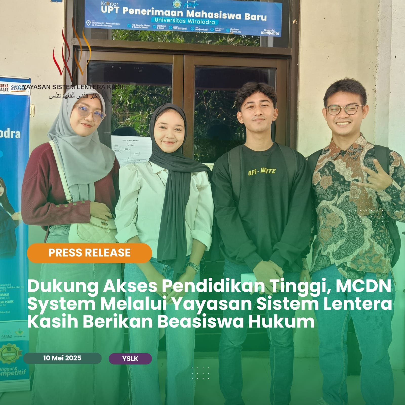 Dukung Akses Pendidikan Tinggi, MCDN System Melalui Yayasan Sistem Lentera Kasih Berikan Beasiswa Hukum Indramayu, 10 Mei 2025 — Sebagai