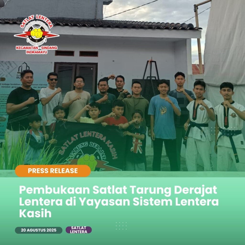 Pembukaan Tarung Derajat Satlat Lentera di Yayasan Sistem Lentera Kasih Yayasan Sistem Lentera Kasih resmi membuka Satuan Latihan (Satlat) Tarung Derajat Lentera sebagai wadah pembinaan mental, fisik, dan karakter generasi muda. Kegiatan perdana ini berlangsung dengan penuh semangat, ditandai oleh latihan pertama para peserta, sambutan dari pimpinan, serta acara syukuran sederhana namun hangat. Latihan perdana […]