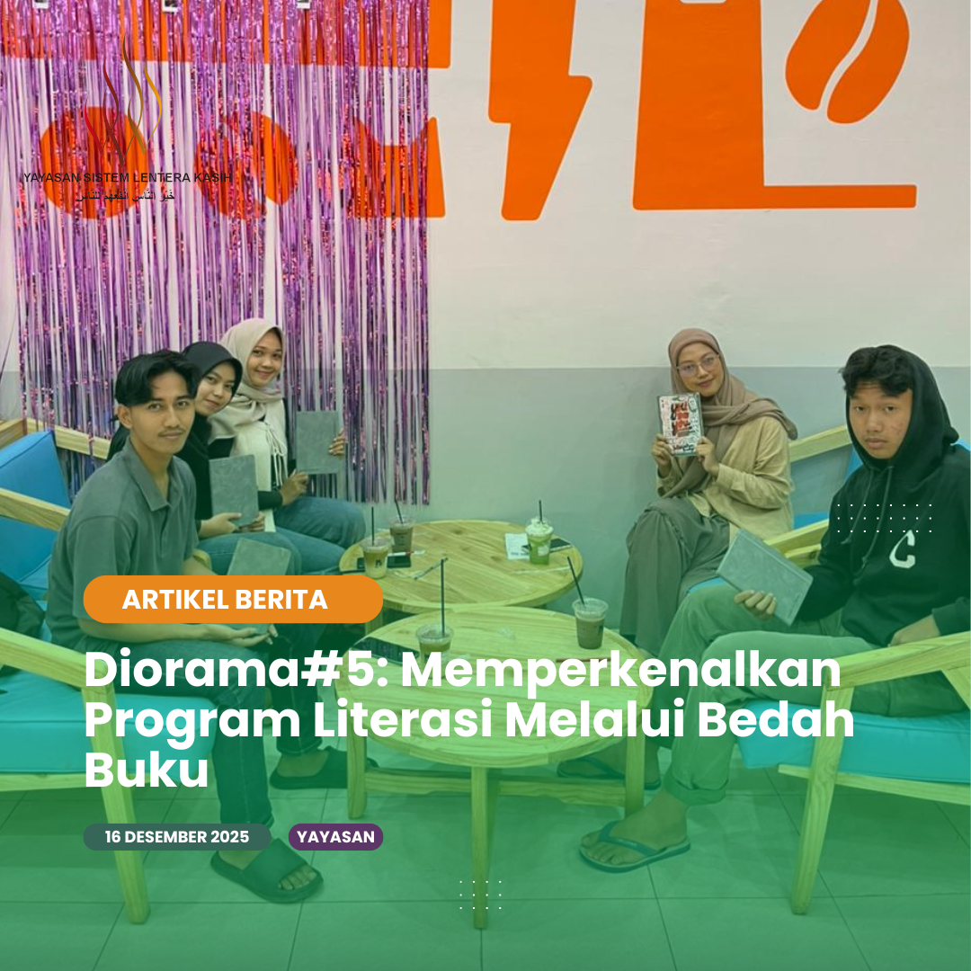 Yayasan Sistem Lentera Kasih kembali menyelenggarakan Diorama: Diskusi Obrolan Bersama, kali ini dengan nuansa yang berbeda. Diorama#5 menghadirkan inovasi berupa program literasi yang salah satu kegiatannya adalah bedah buku, yaitu sebuah metode pembelajaran yang mendorong peserta tidak sekadar membaca, tetapi juga mengolah, memahami, dan mendiskusikan isi bacaan secara mendalam, sehingga pengalaman belajar menjadi lebih hidup dan reflektif.